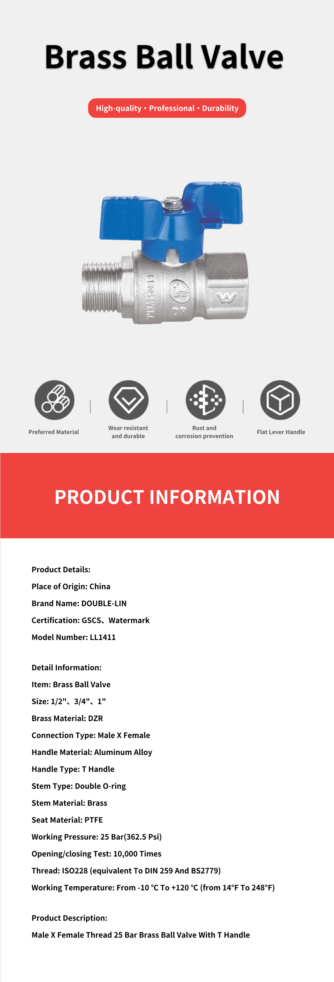 Ball valve, full flow, male/female long threads, heavy type, T handle