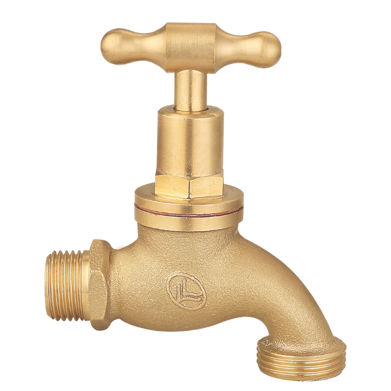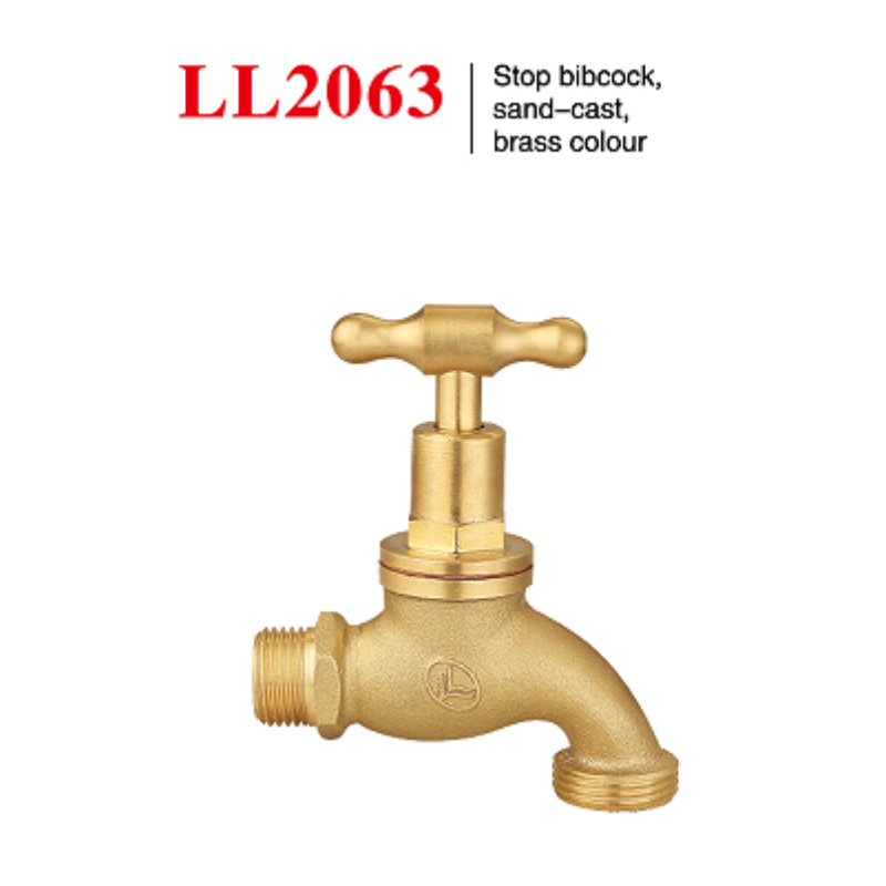Stop bibcock, sand-cast, brass colour