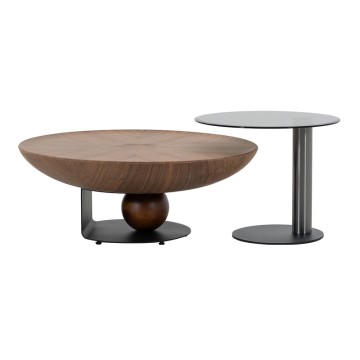 Beron Black Wooden Coffee Table Combination of D900/L520 - Brown/Wood/Large: L900W900H320mm / Small: L520W400H450mm
