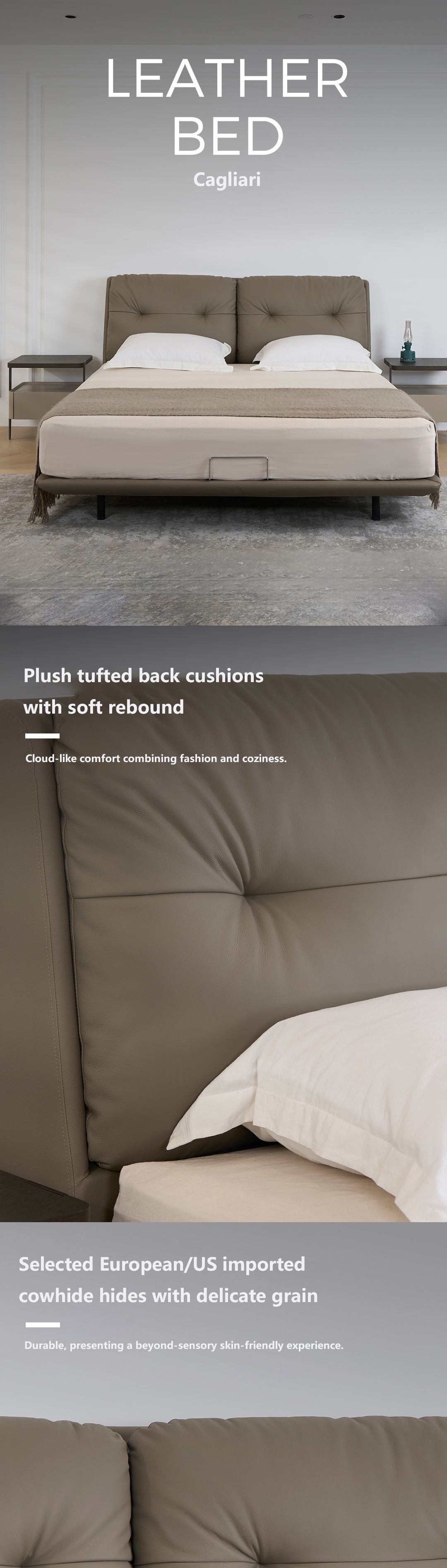 Cagliari Stony Grey Cowhide Soft Bed