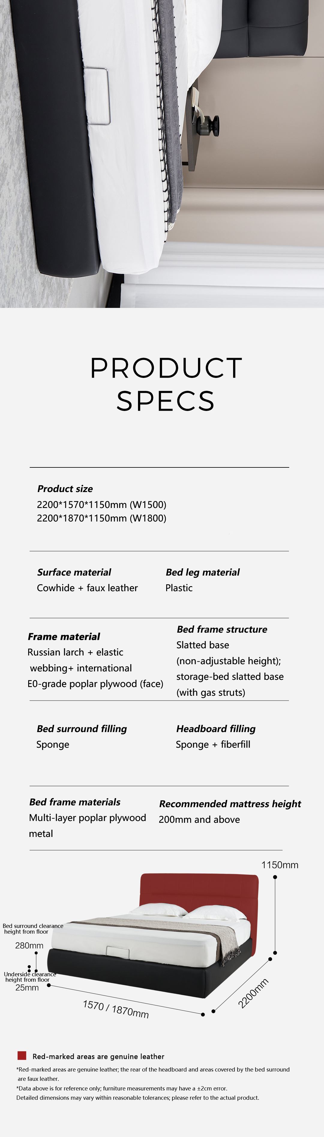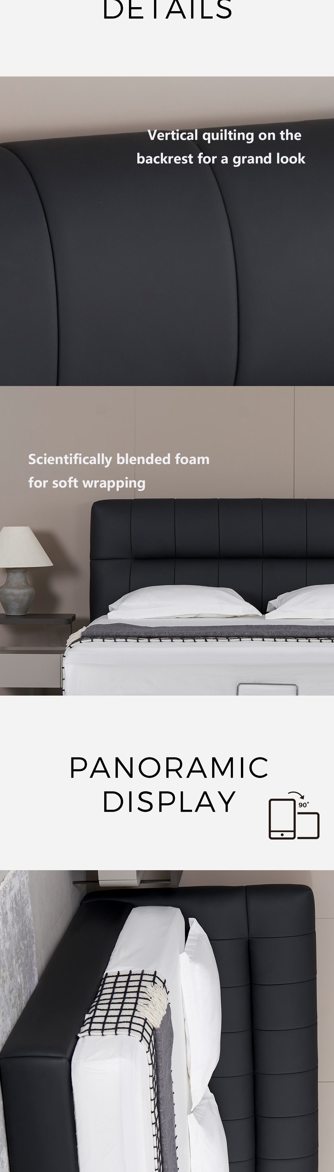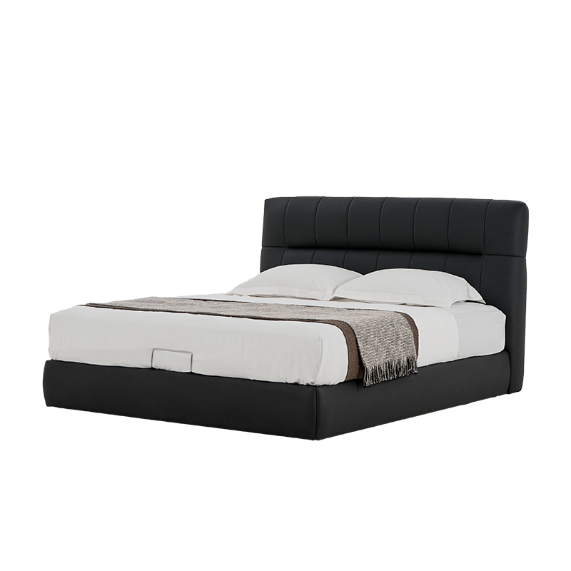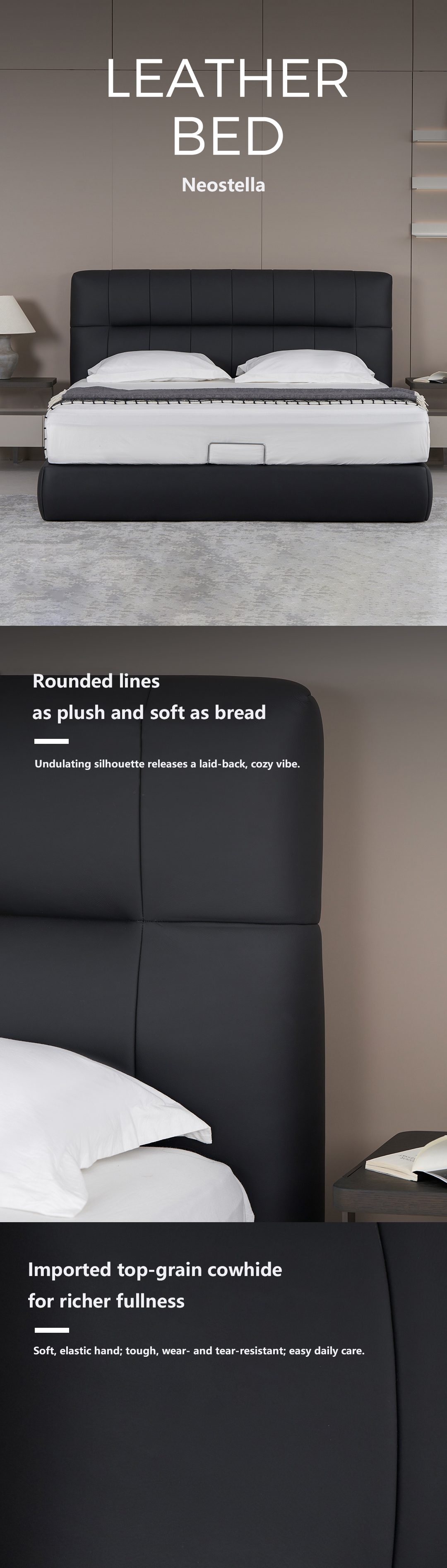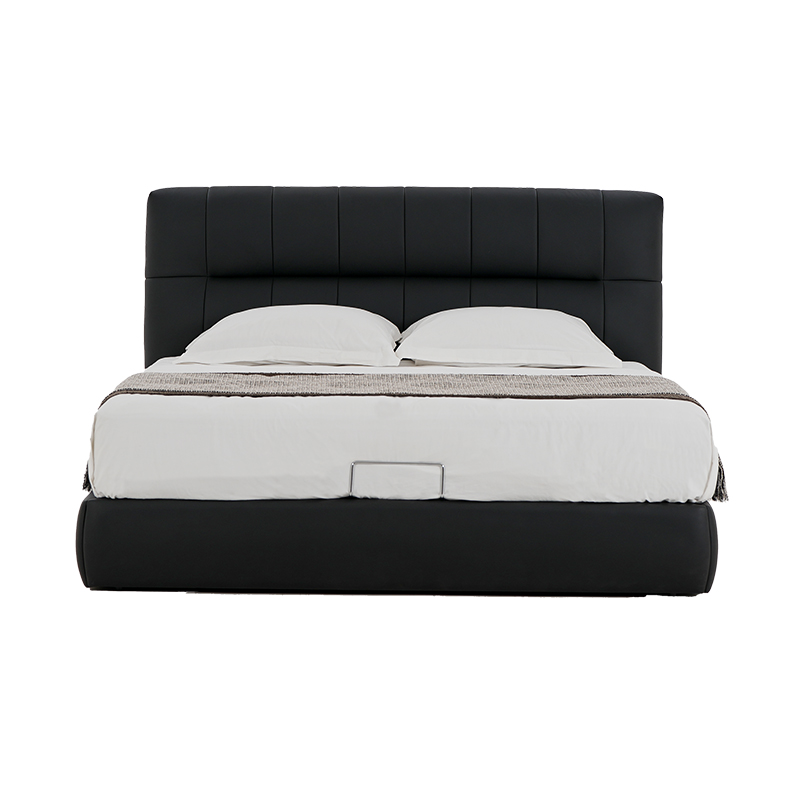 Neostella Black Cowhide Storage Soft Bed