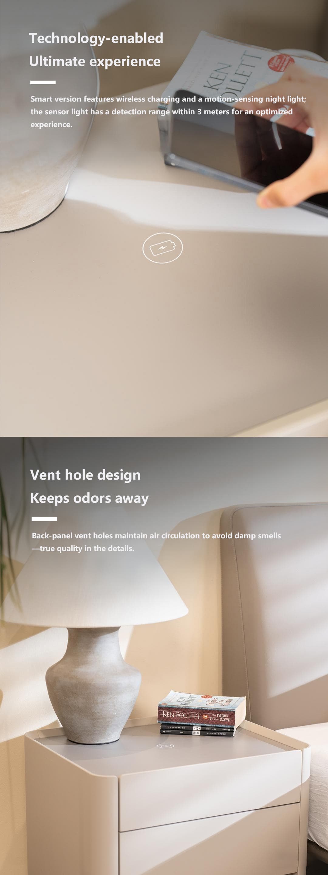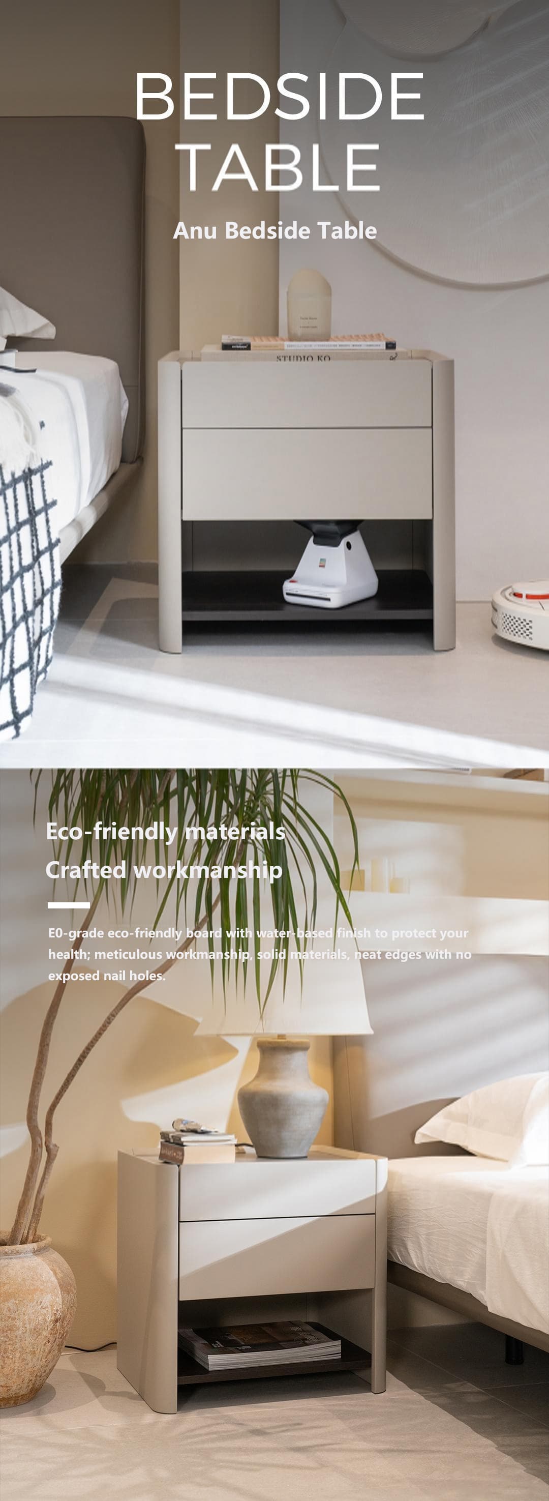 Anu Beige Wooden Bedside Table