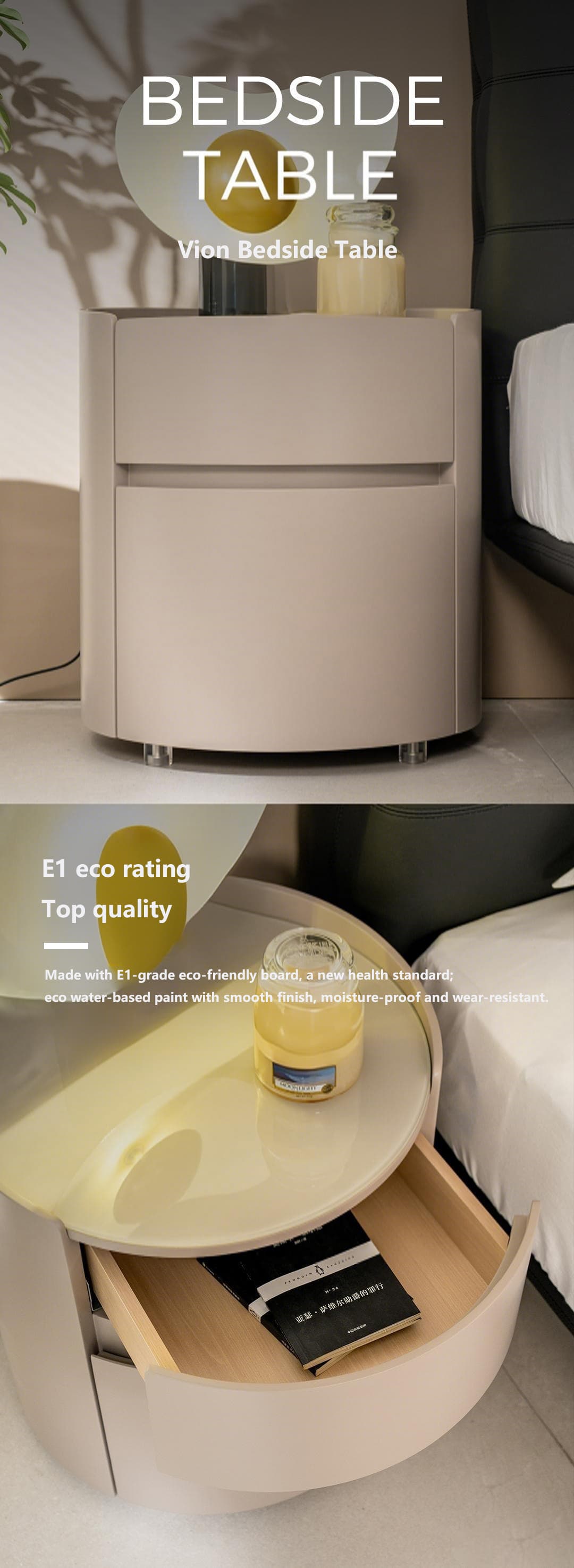 Vion Beige Wooden Bedside Table