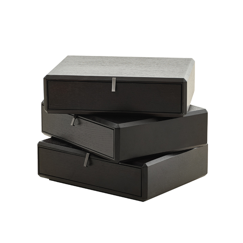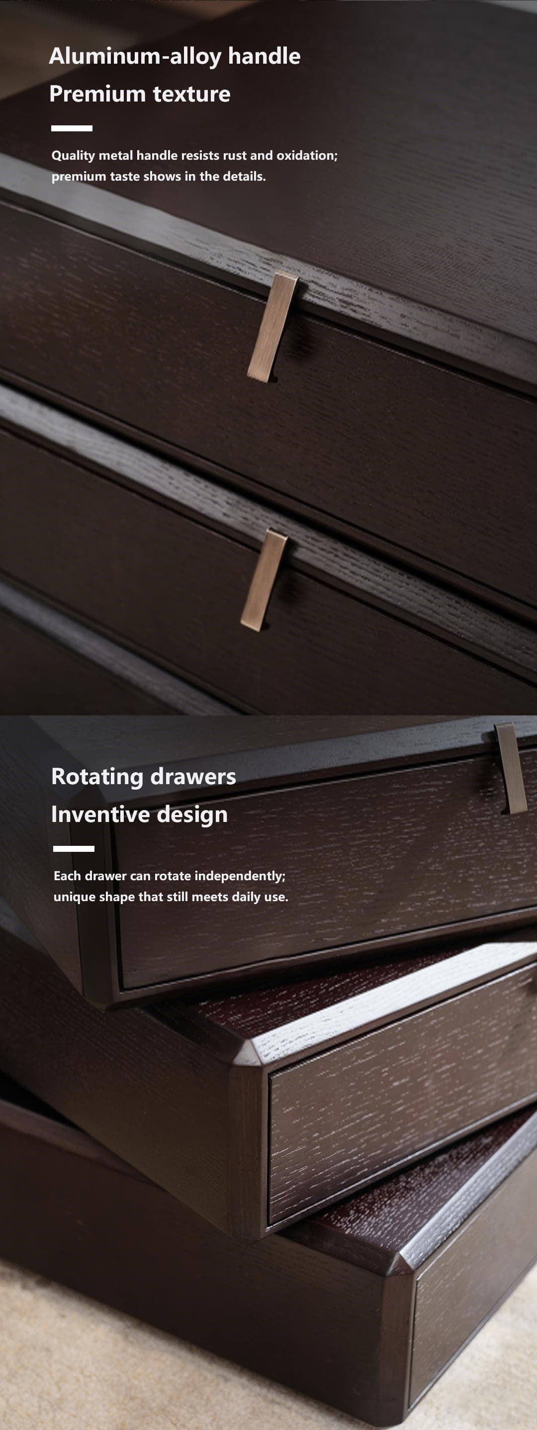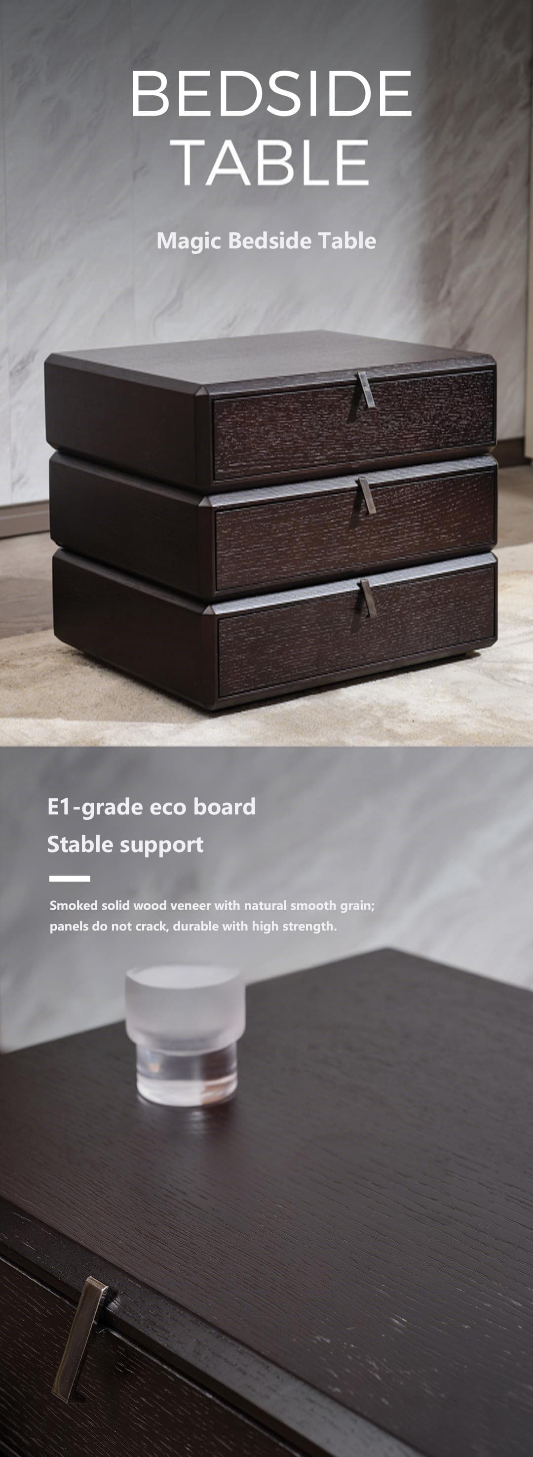 Magic Cube Shaped Dark Brown Rotating Wooden Bedside Table