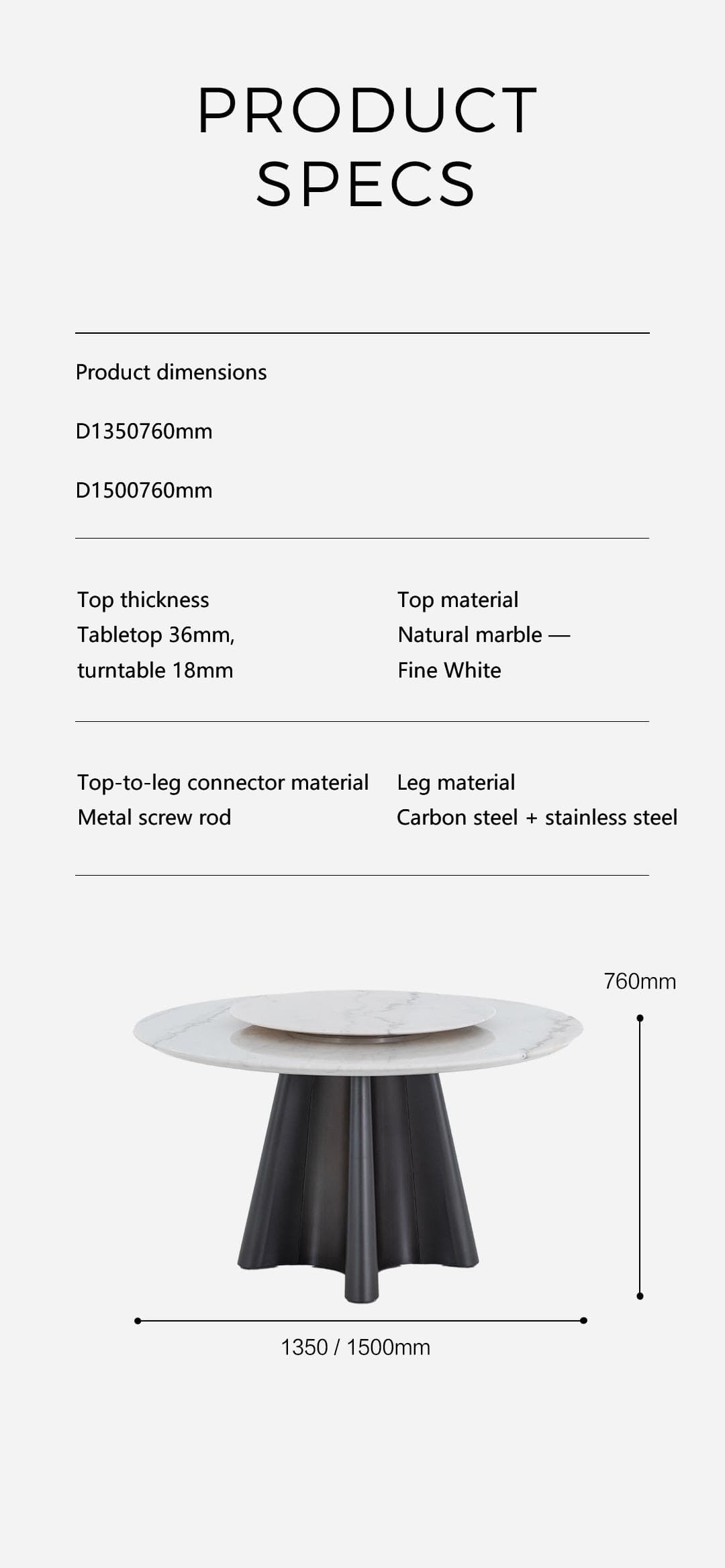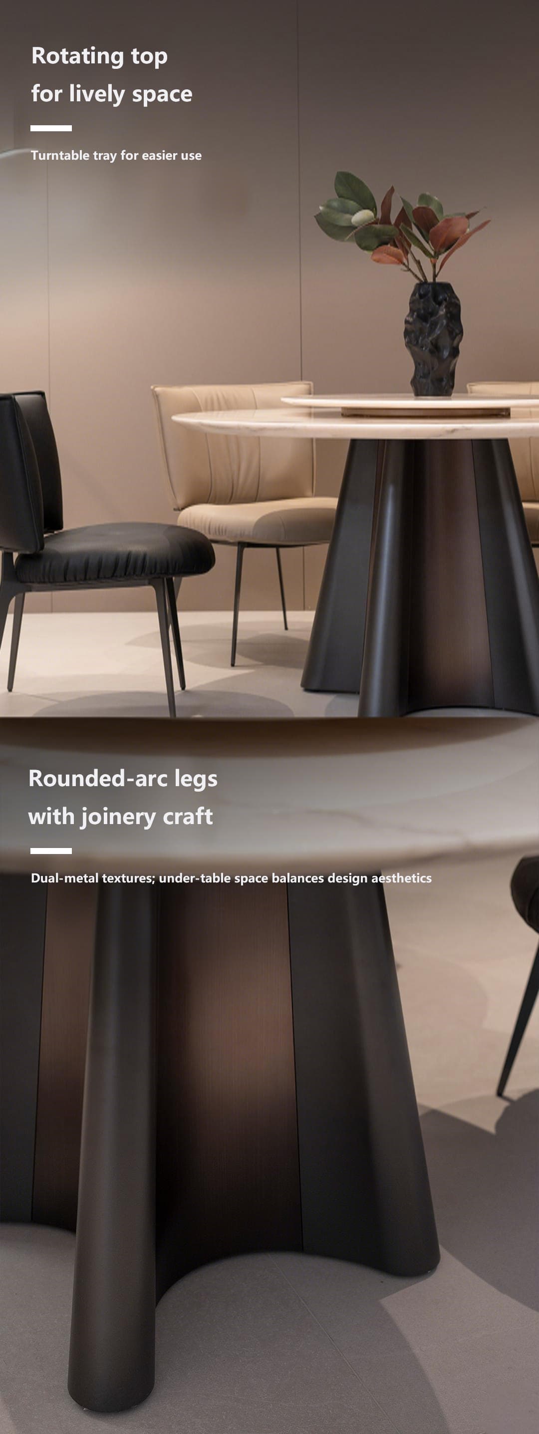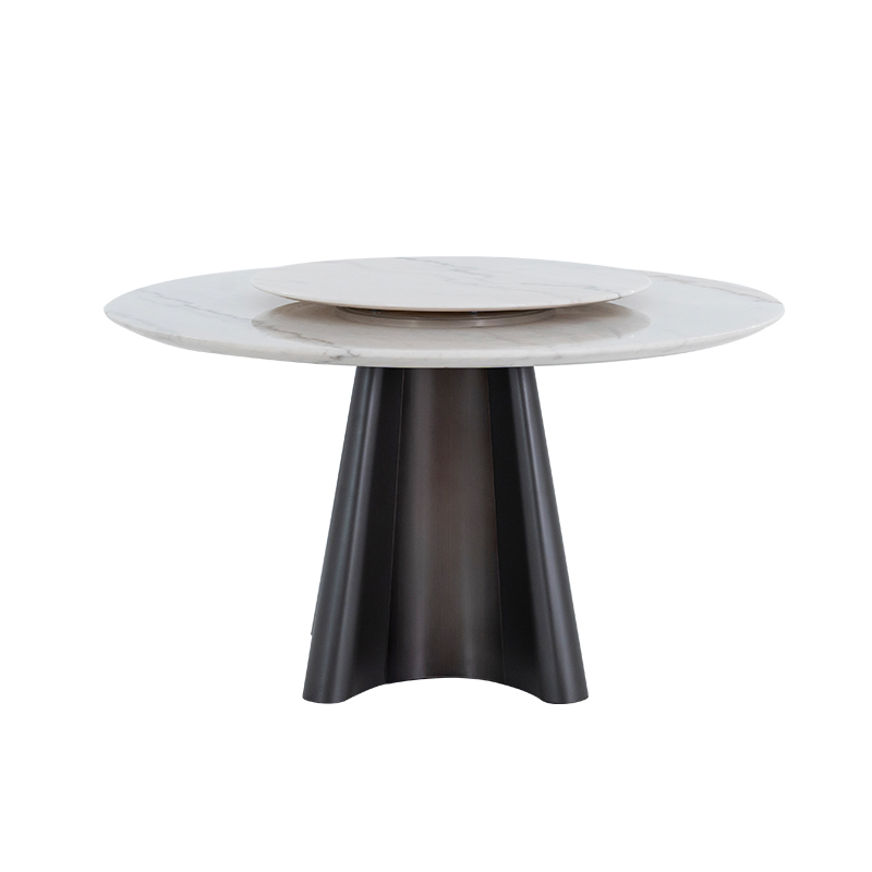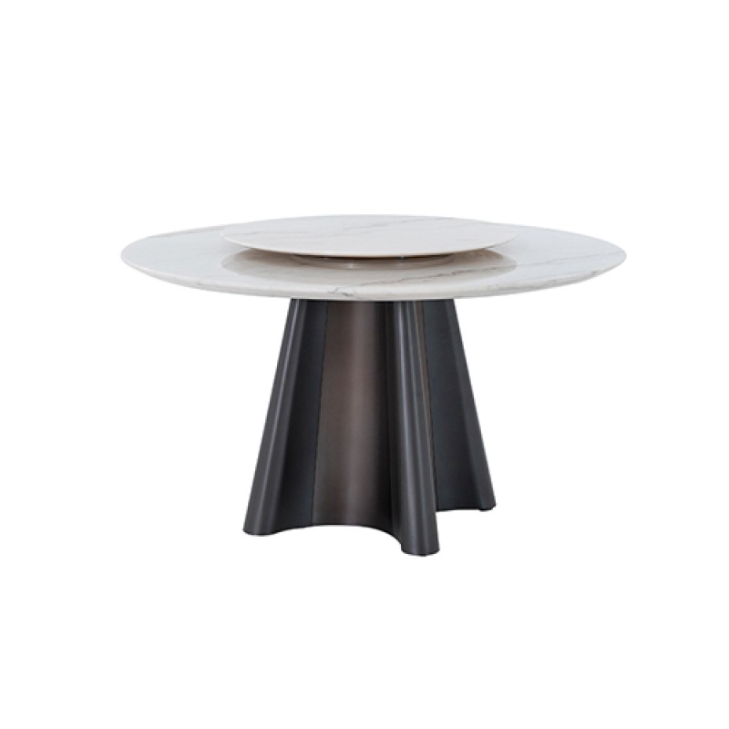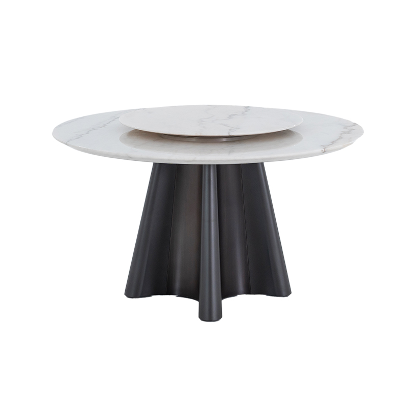 Era Fine Flower White Marble Turntable Dining Table