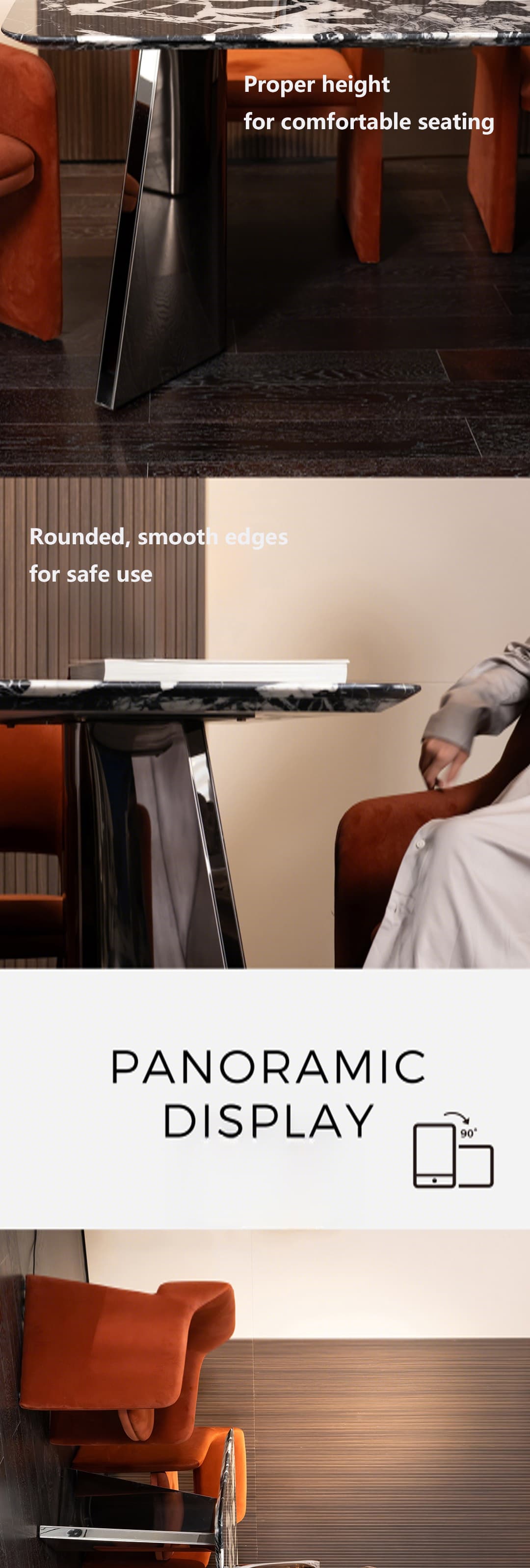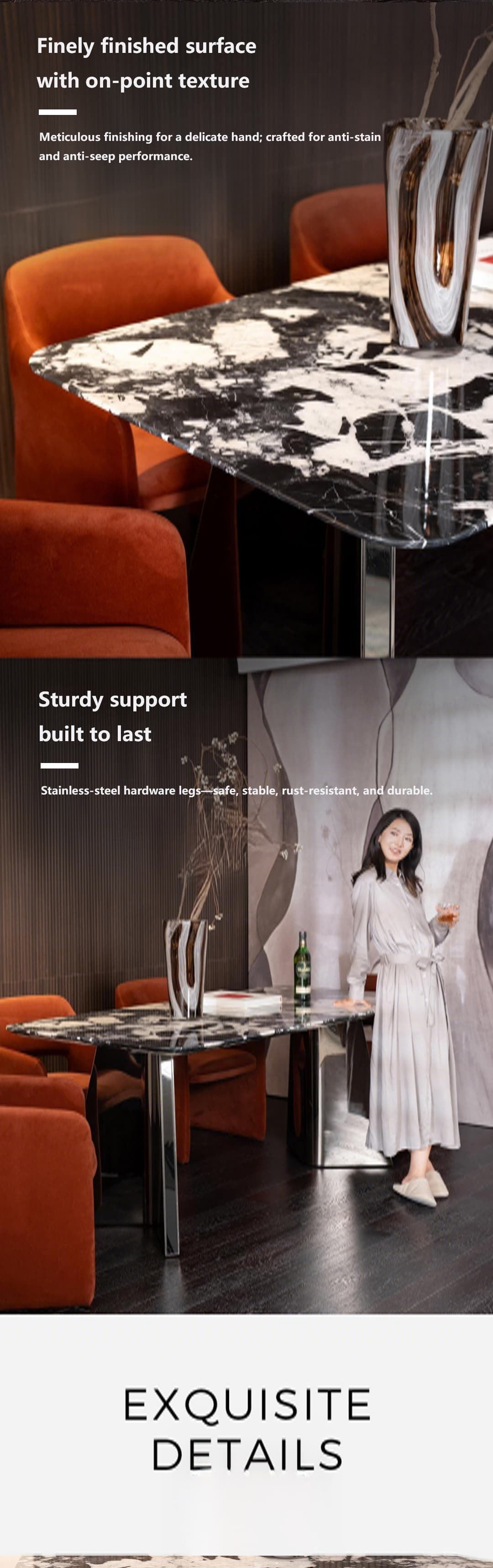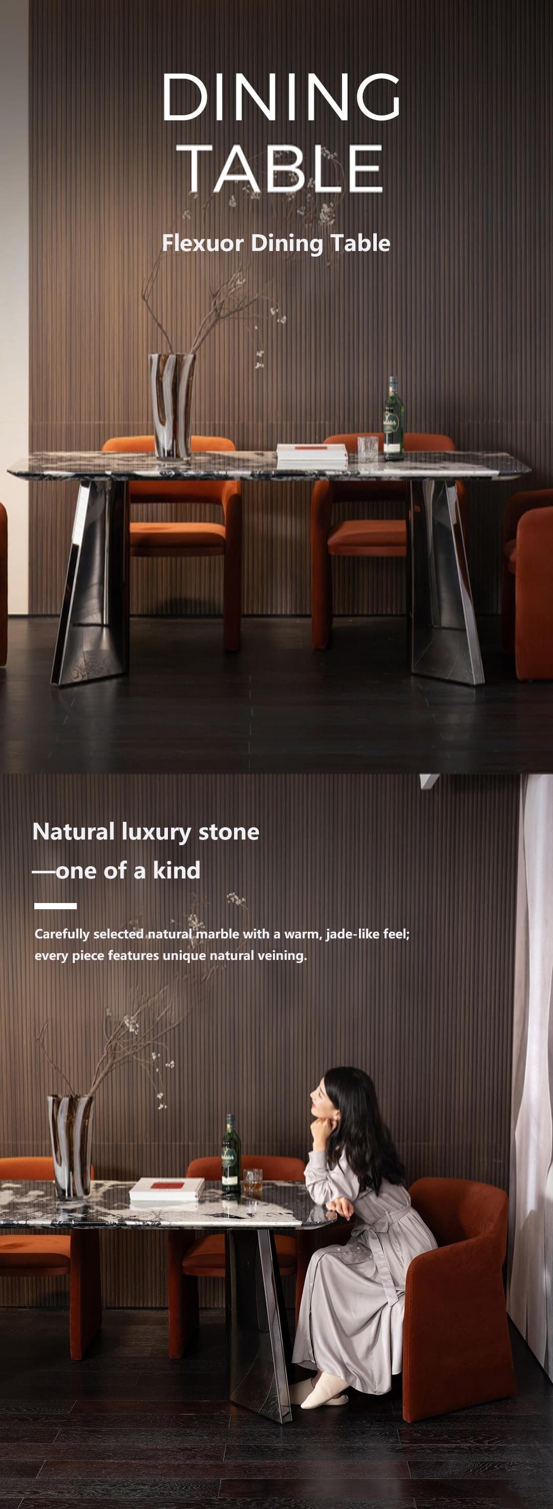 Flexuor Black Marble Dining Table in Bulgari Style