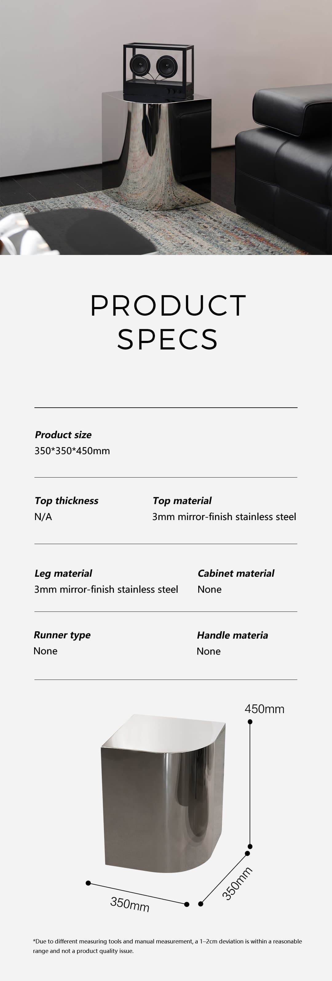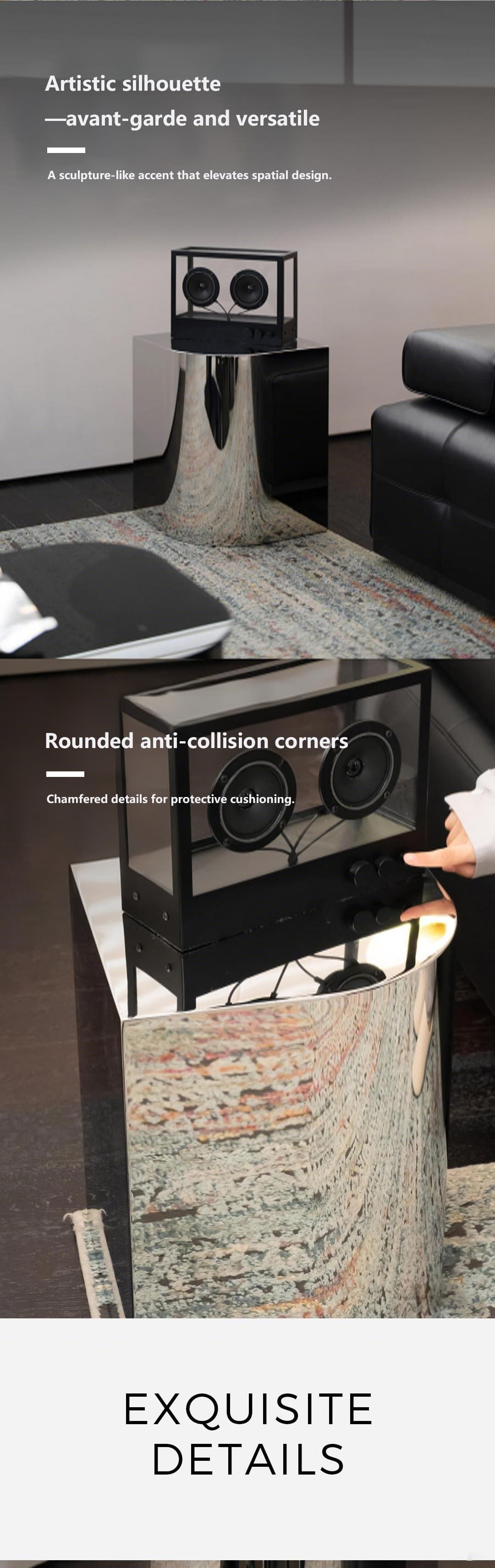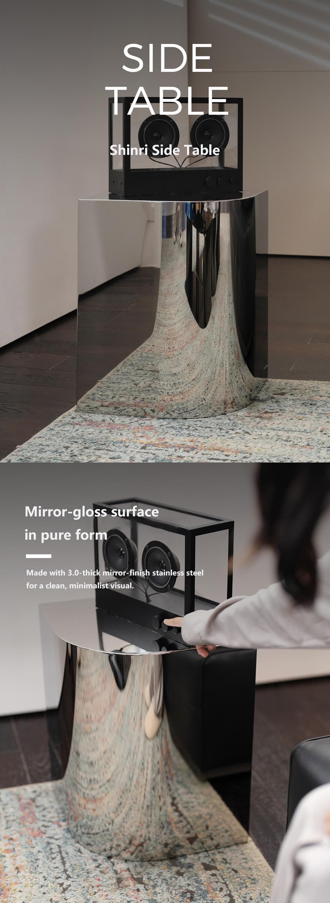 形意镜面不锈钢L350边几