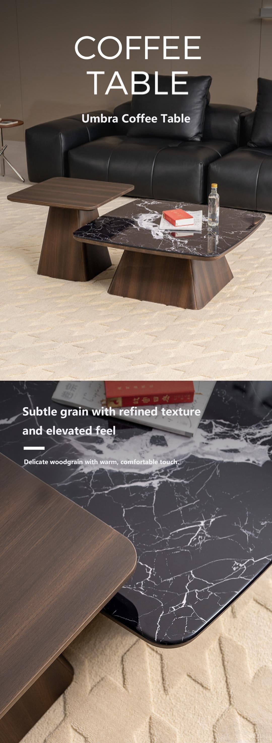 Umbra Black Microcrystalline Stone Coffee Table Combination of L850/L550