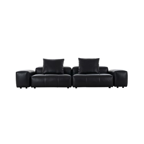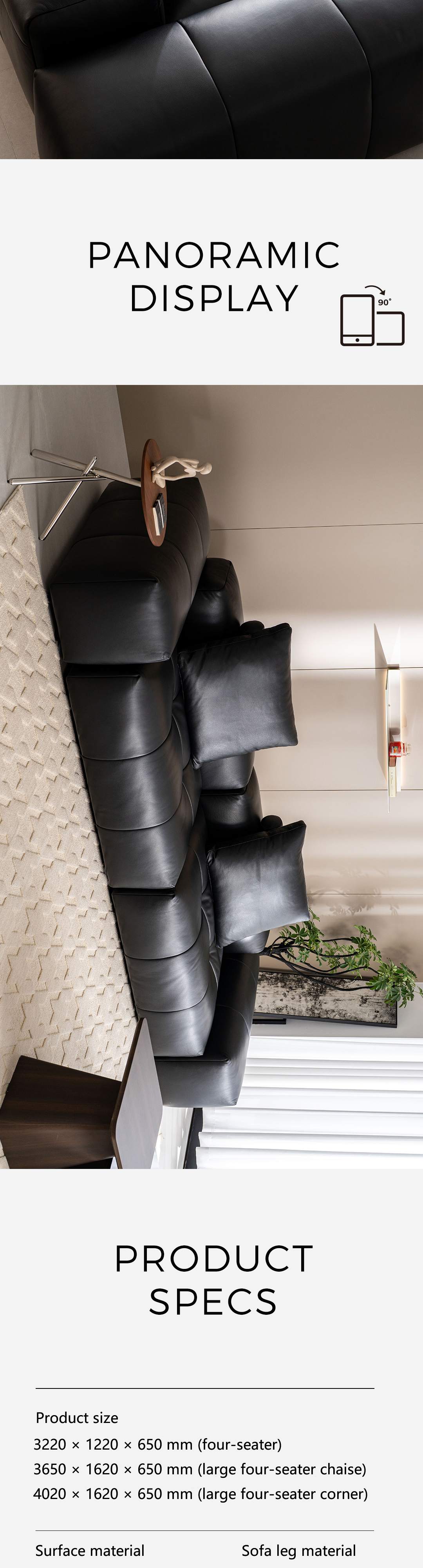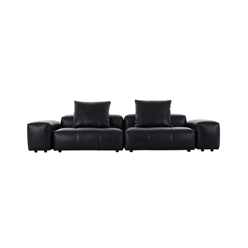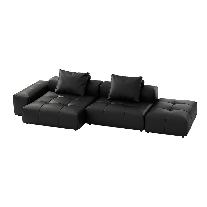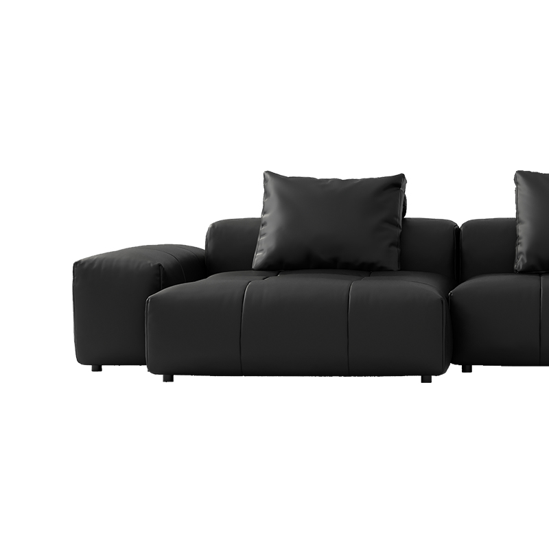 新像素耀黑色牛皮大四人位转角沙发