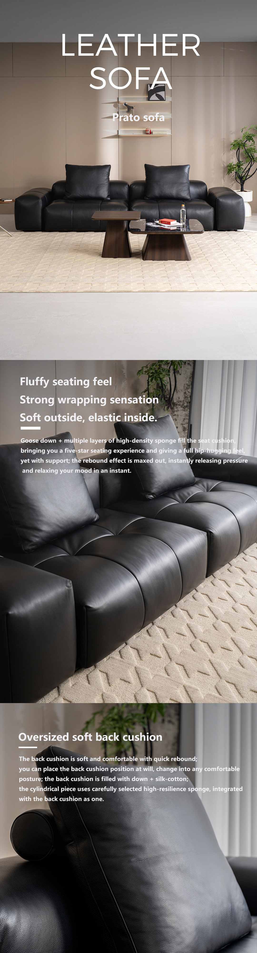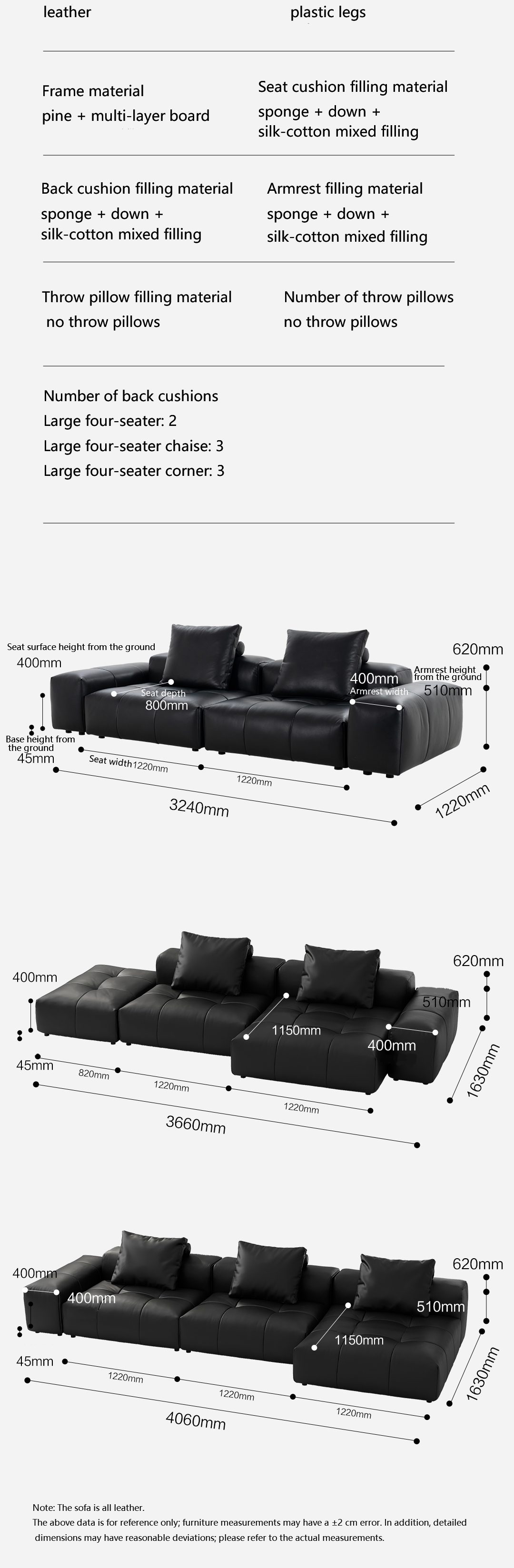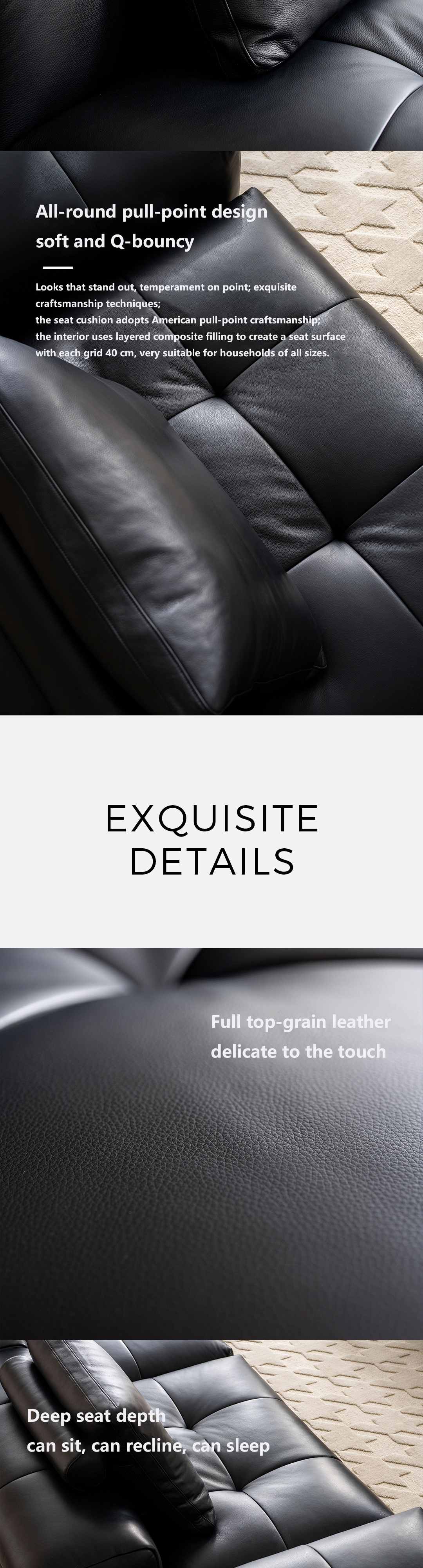 新像素耀黑色牛皮大四人位转角沙发