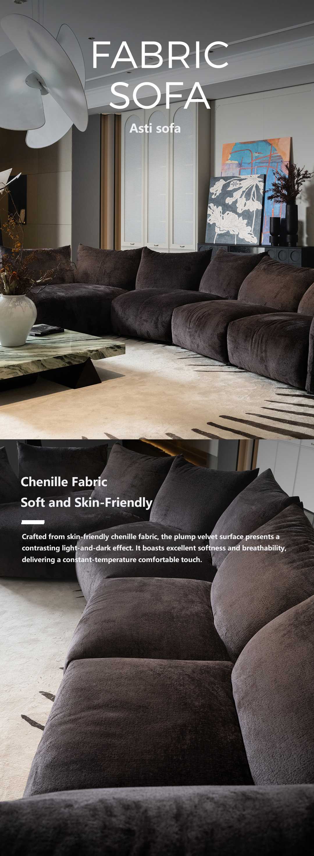新绽意雾绒色布艺转角沙发