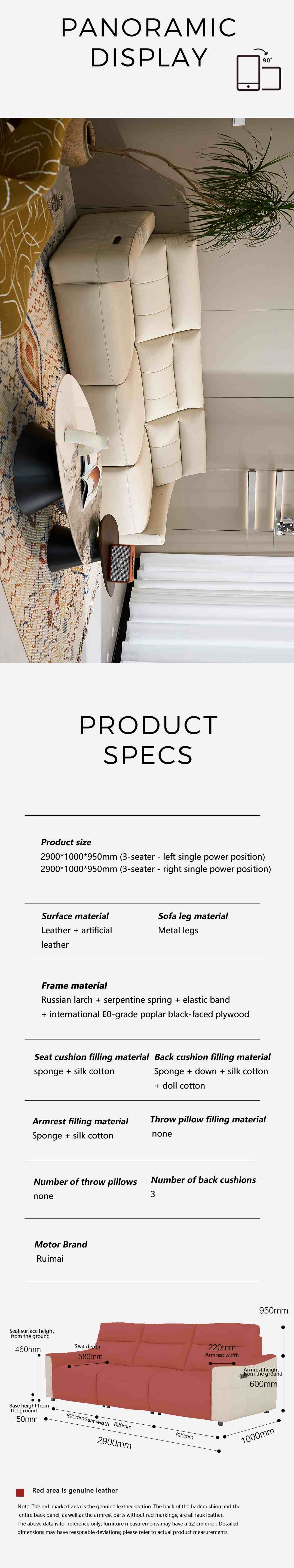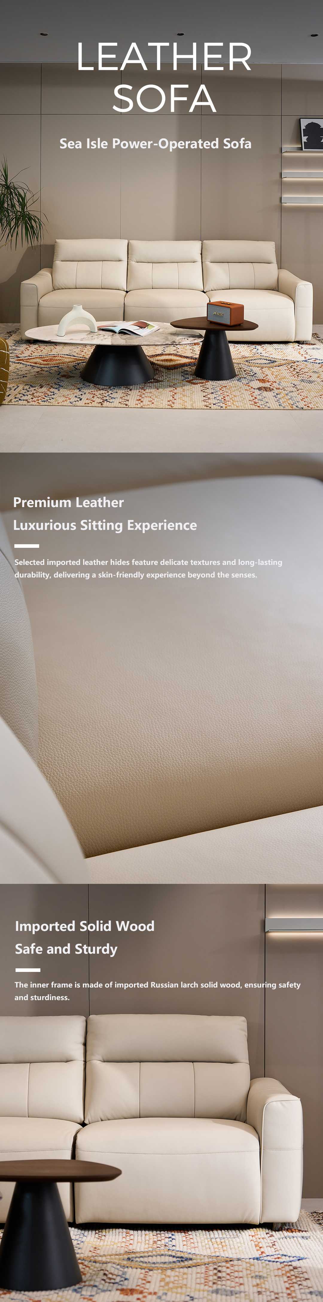 Sea Isle Misty Grey Leather Four-seater with Double Electric Seats