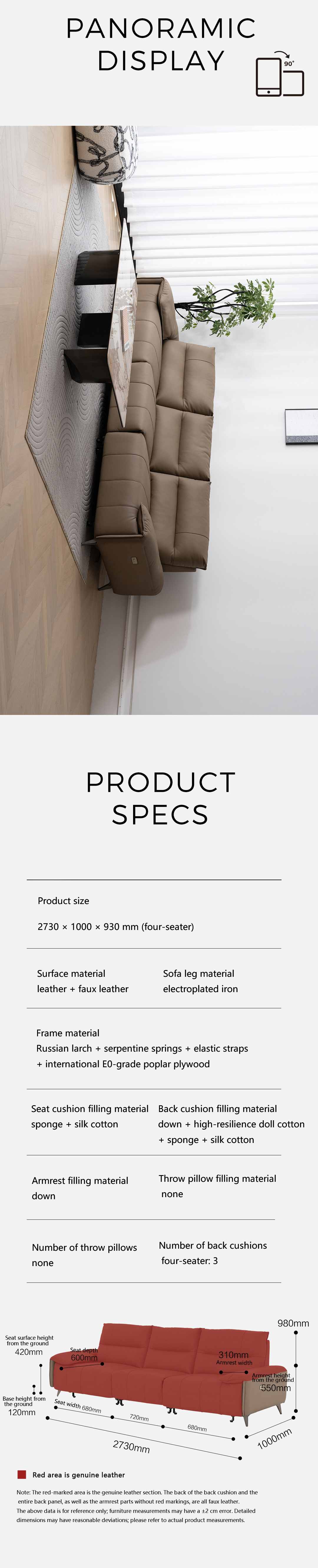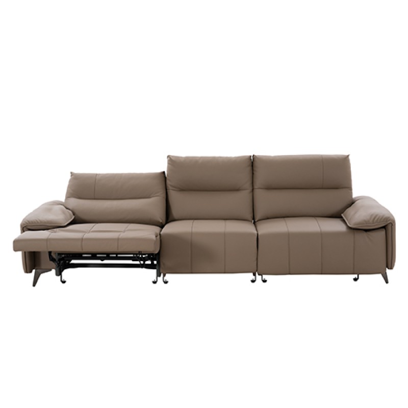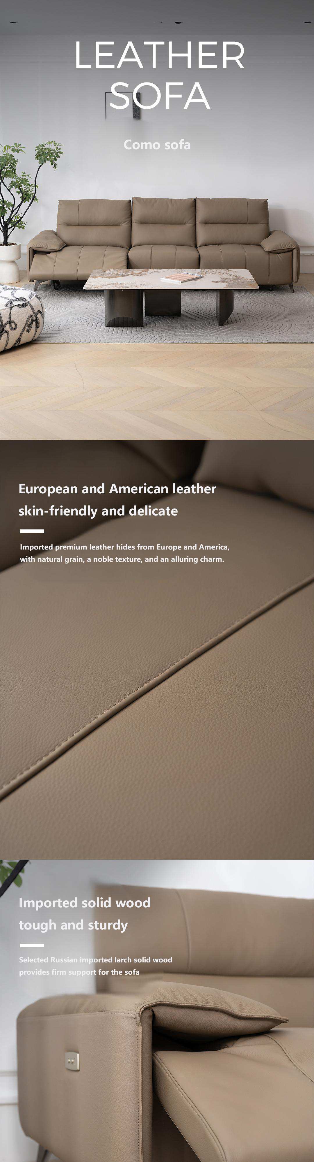Como Shining Black Cowhide Four-seater Sofa with Double Electric Seats