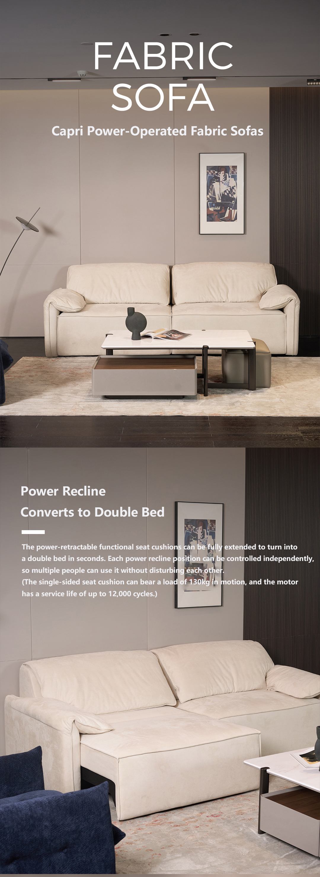Capri Hazelnut Fabric Four-seater with Double Electric Seats