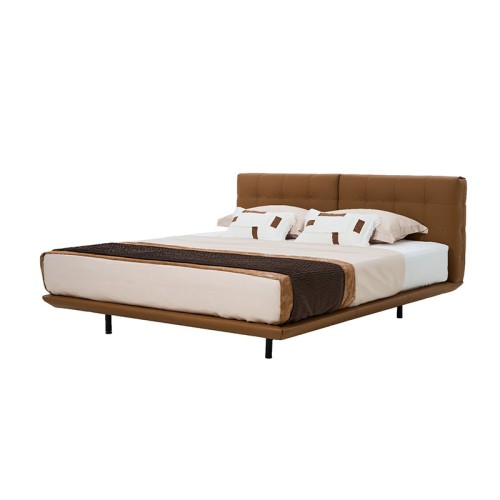Ria Leather floating desinger queen bed Orange brown