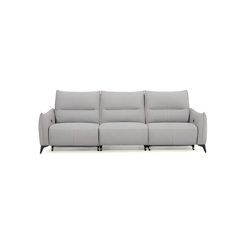 Crescent light grey 4 seater dual electric recliner leather sofa