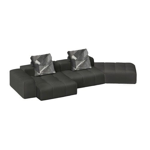 Fangyu black cowhide sofa large 4 seater with right corner