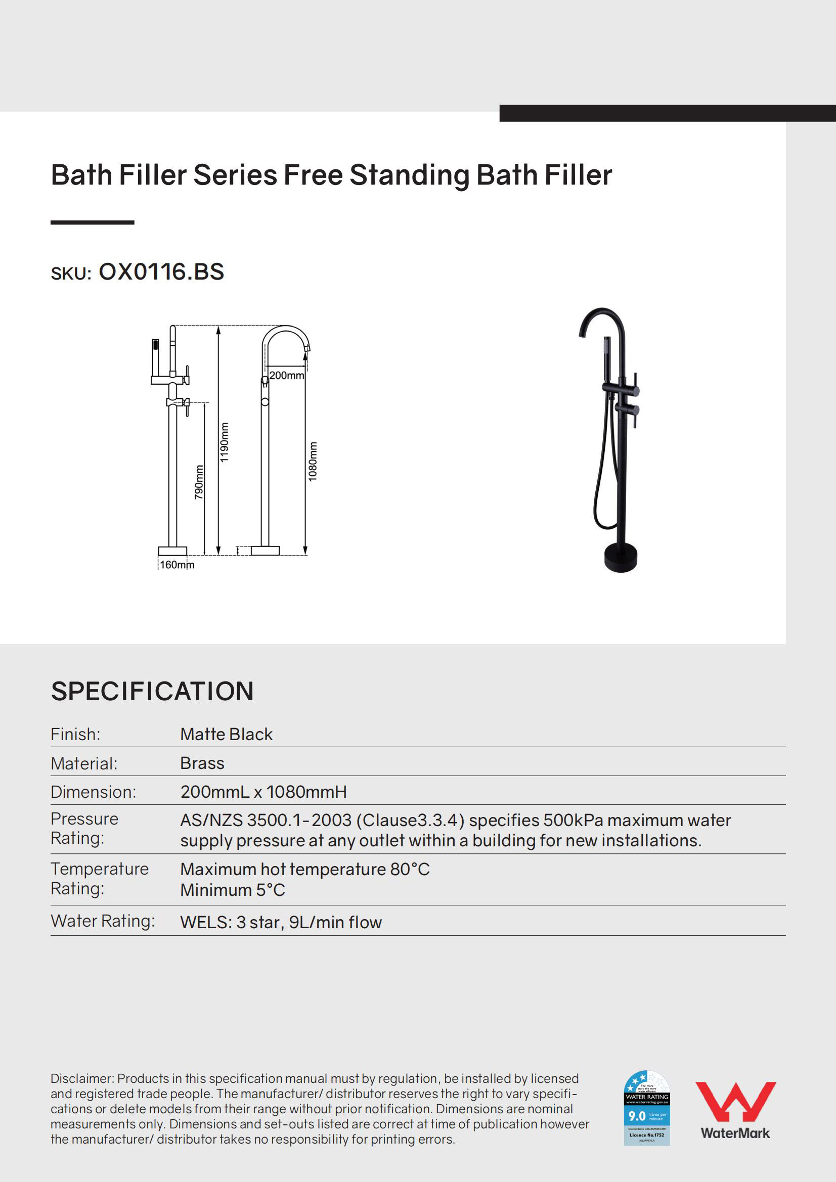Bath Filler Series Free Standing Bath Filler