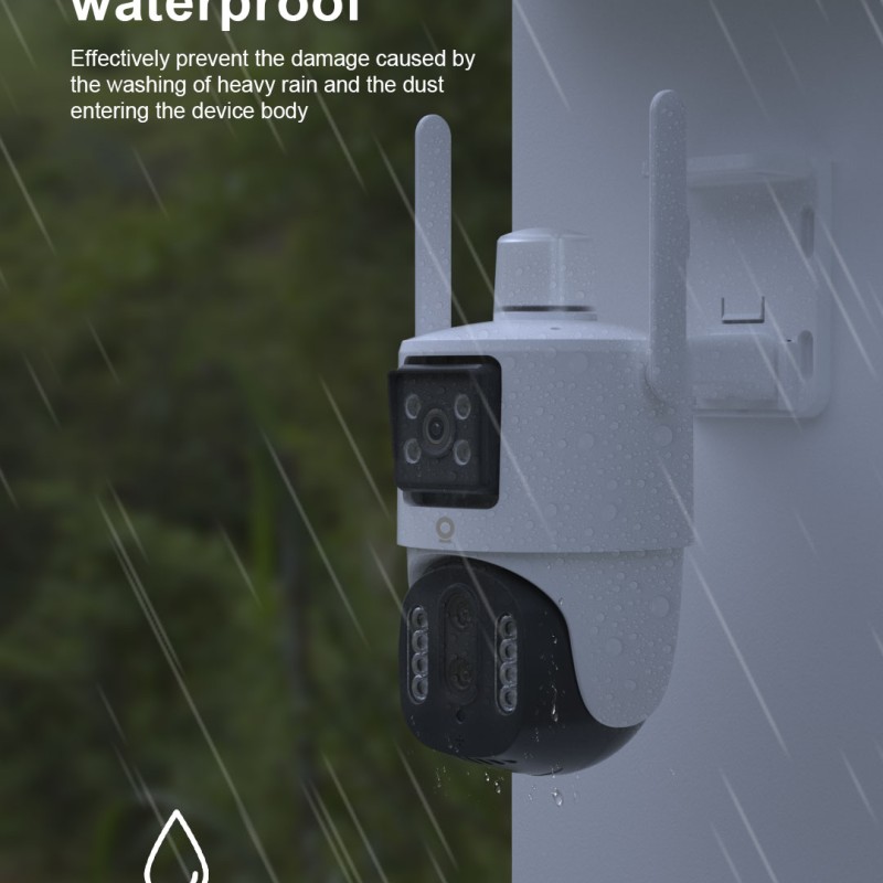 The KFV380 is a high-performance three-lens hybrid zoom PTZ intelligent security camera, specifically designed for outdoor and high-security requirement scenarios. It features a 1/2.9-inch Progressive Scan CMOS sensor and a dual main camera setup (2MP + 2MP), providing both wide-angle monitoring and long-distance detail capture. The image is clear and stable, meeting the security needs of various scenarios such as courtyards, warehouses, construction sites, and shops.