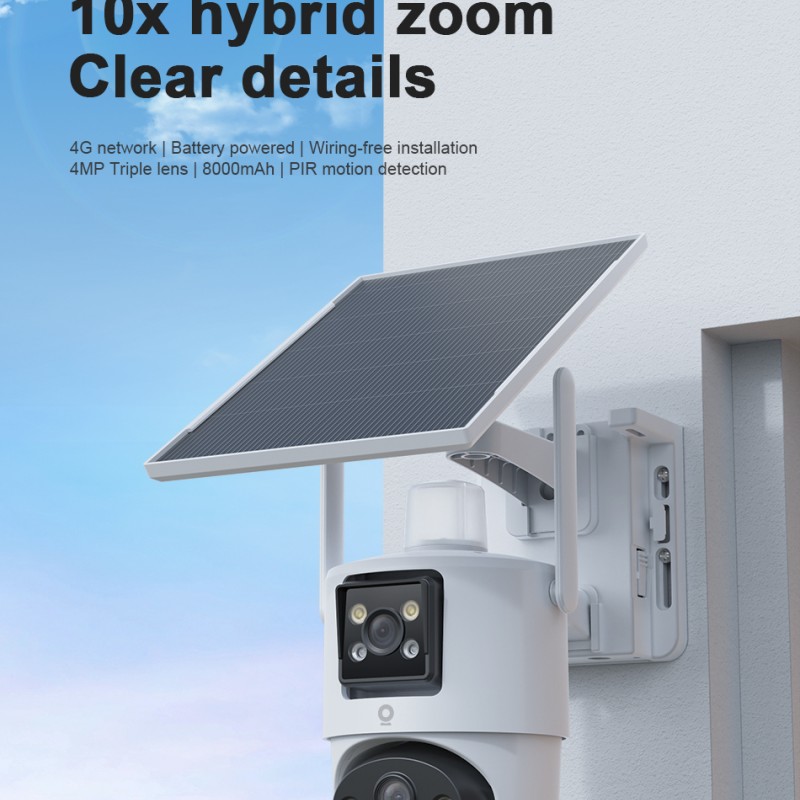 V380 太阳能三镜头混合变焦 PTZ 户外智能摄像头