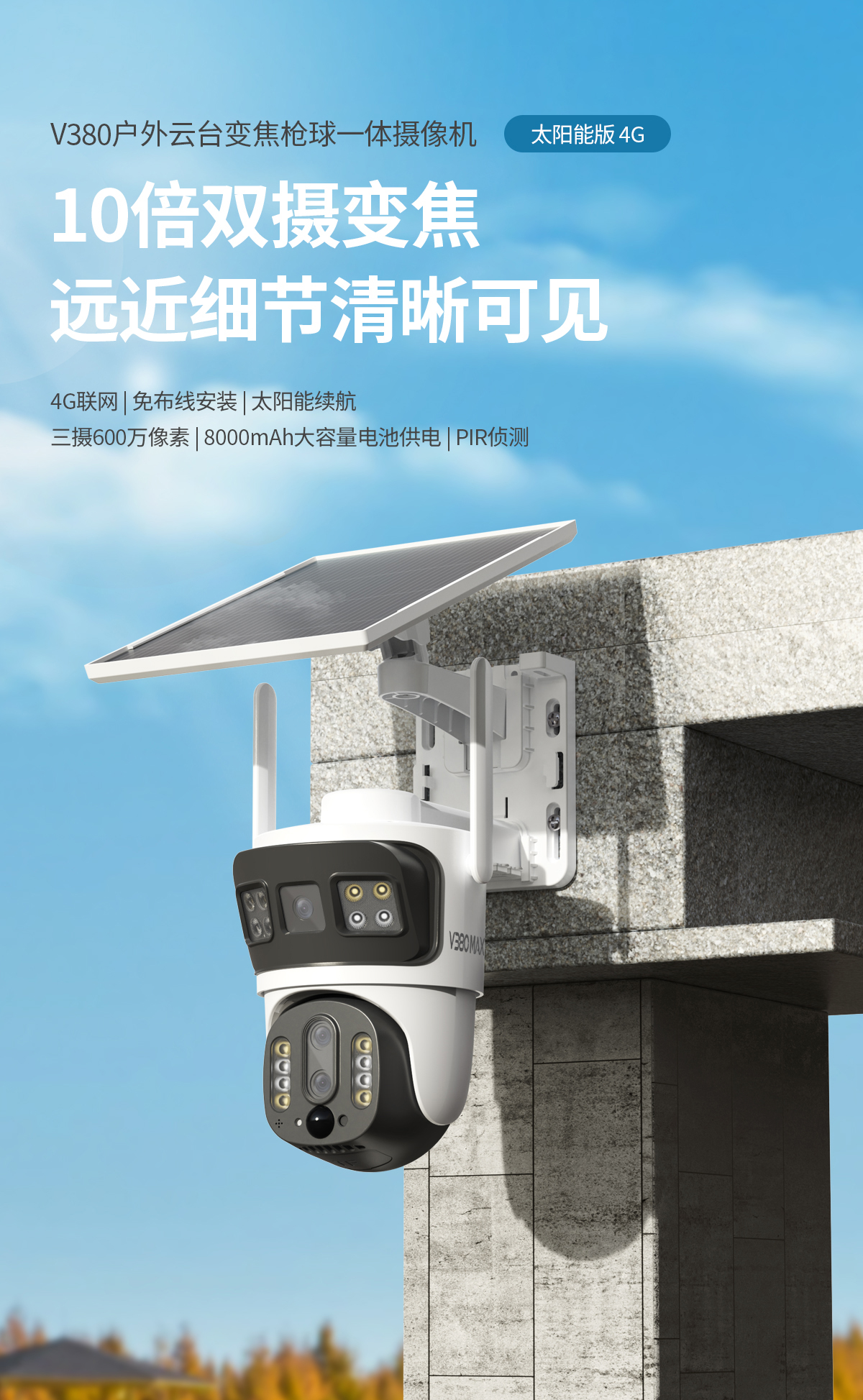 Triple-Lens Multi-Focal · Dual 3MP HD · Bullet & PTZ Design · Standalone 4G · Solar Powered