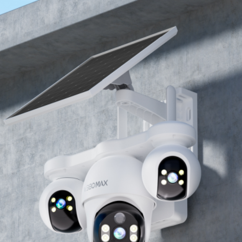 The V380 P19-L is a high-performance outdoor security camera featuring triple lenses and triple PTZ modules, designed for large-area and high-security surveillance scenarios. It integrates wide-range coverage, intelligent tracking, and wire-free deployment, making it ideal for farms, orchards, construction sites, industrial parks, villas, remote areas, and locations without fixed power or broadband.